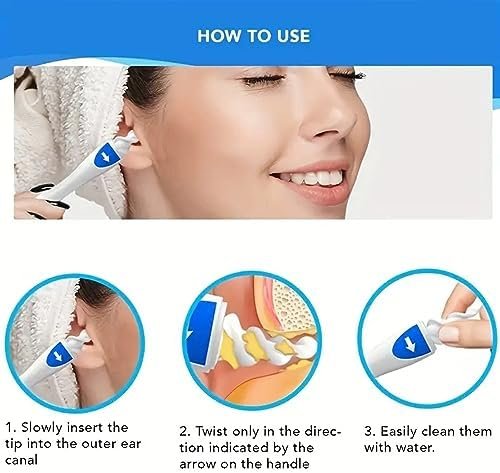 【SIMPLE TO UTILIZE AND MAINTAIN】Gently and cautiously insert the tip into your ear canal, then slowly rotate it following the arrow on the handle’s direction. The tips are effortlessly washable with water and come with 16 replaceable washable tips, ensuring the upkeep of your ear canals’ health. To replace the tips of this ear wax removal tool, press both sides of the tip, releasing it for easy replacement with a new one.
