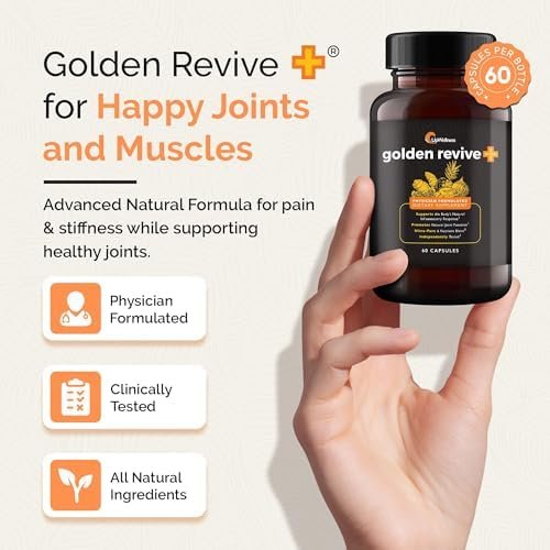 Free Yourself From Joint Discomfort: Golden Revive Plus Joint Supplement is designed to support joints, muscles, and nerves. It eases muscle tension and fibrosis, initiates the body’s healing process, reduces scarring and tissue damage, and promotes an improved range of motion. Turn back the clock on your joint health and enjoy life again.